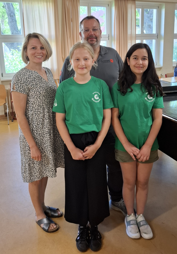 Der Schulchor freut sich über ein ganz besonderes Geschenk: Dank der großzügigen Unterstützung der Firma Karl Schöngen KG Kunststoff-Rohrsysteme konnten alle Chormitglieder mit neuen, grünen T-Shirts ausgestattet werden.