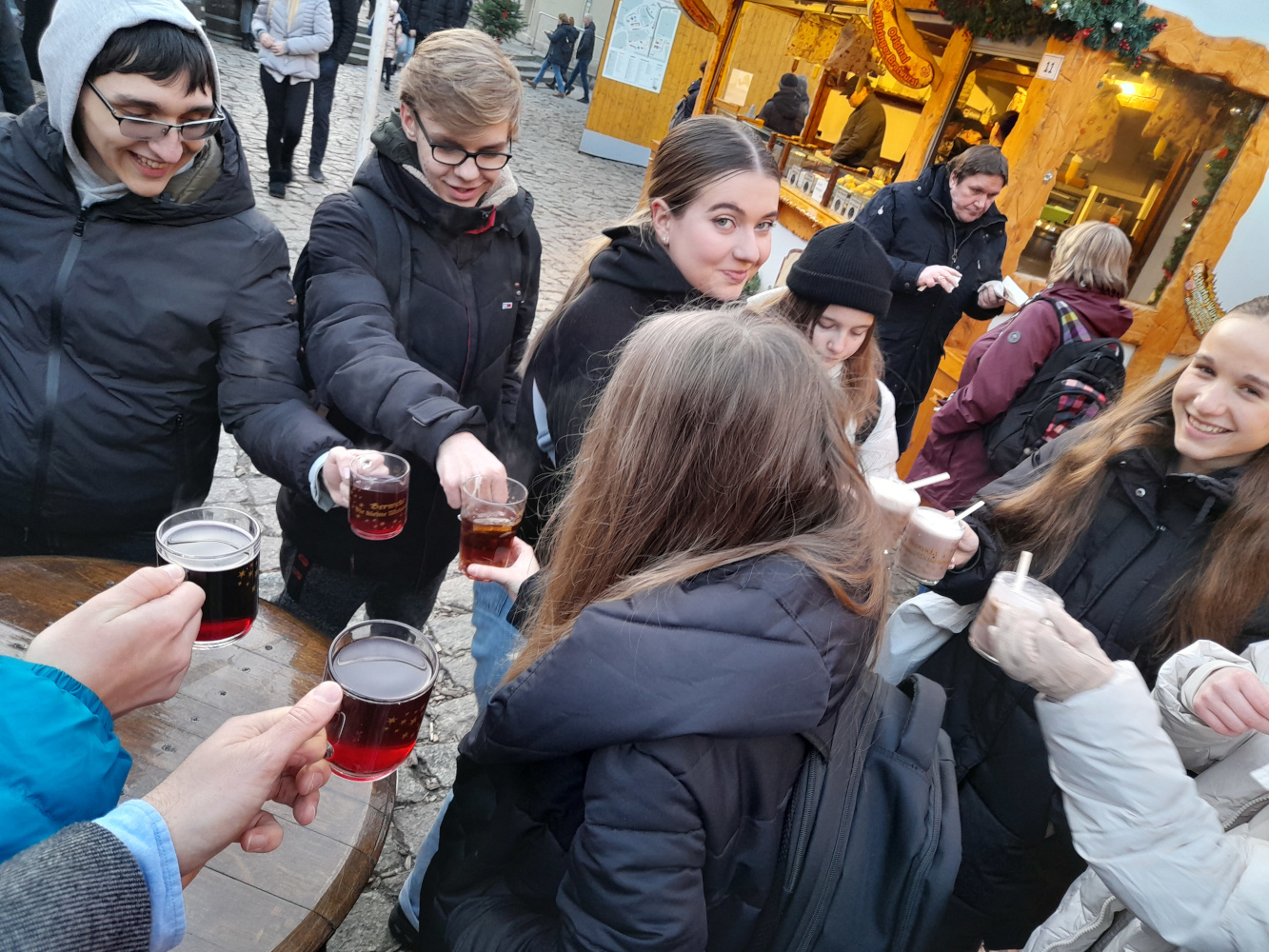 Gestern machte sich eine Gruppe aus 16 Leuten, darunter Benjamin Huhn, Miriam Müller, einige deutsche und ukrainische Schülerinnen und unser BuFdi Cedric Todemann auf den Weg zum Braunschweiger Weihnachtsmarkt. Diese Gruppe war die Deutsch-Ukrainische Mittagspause, welche nun fast schon ein Dreivierteljahr besteht. Ziel war es, den Ukrainerinnen und Ukrainern von unserer Schule das deutsche Kulturgut Weihnachtsmarkt zu präsentieren.
